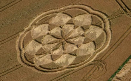 This pictures shows marks in cornfields generated by aliens using interdimensional technology.